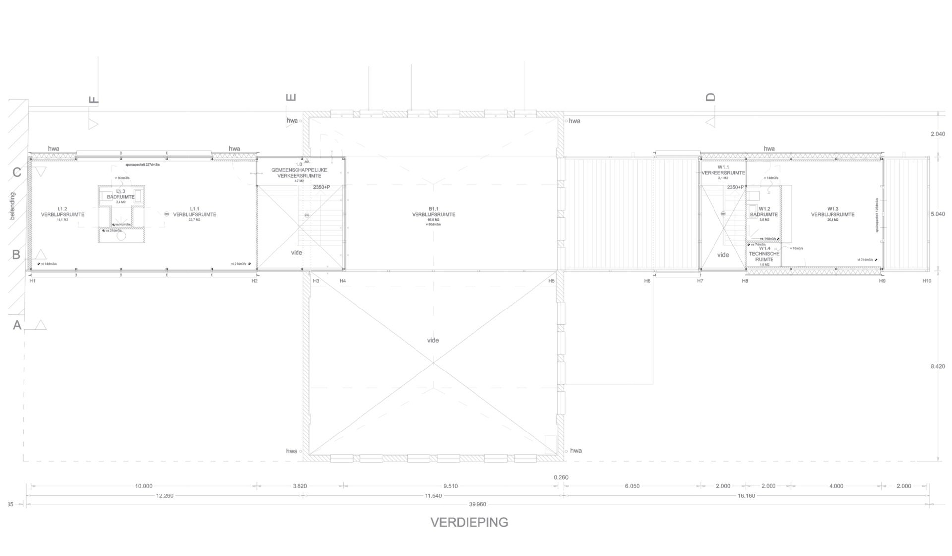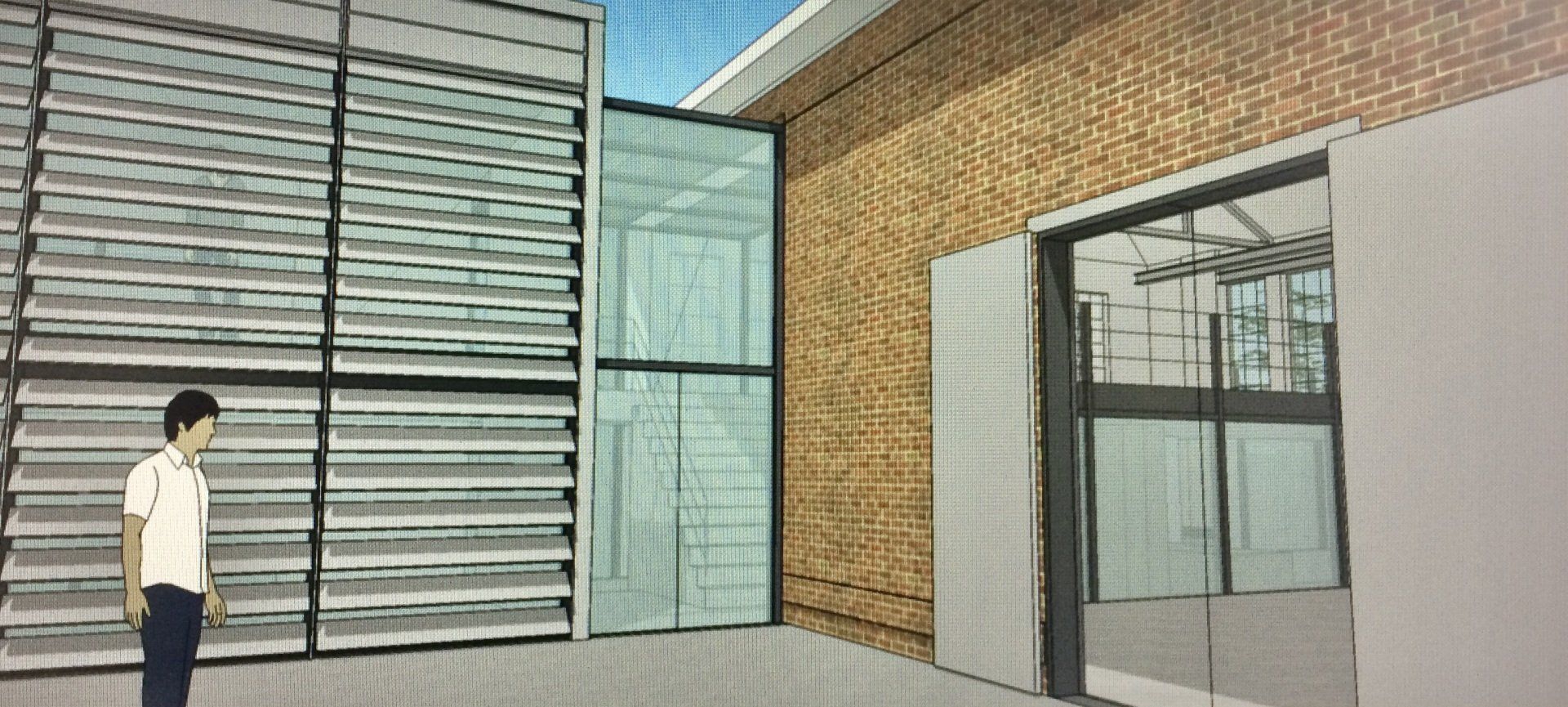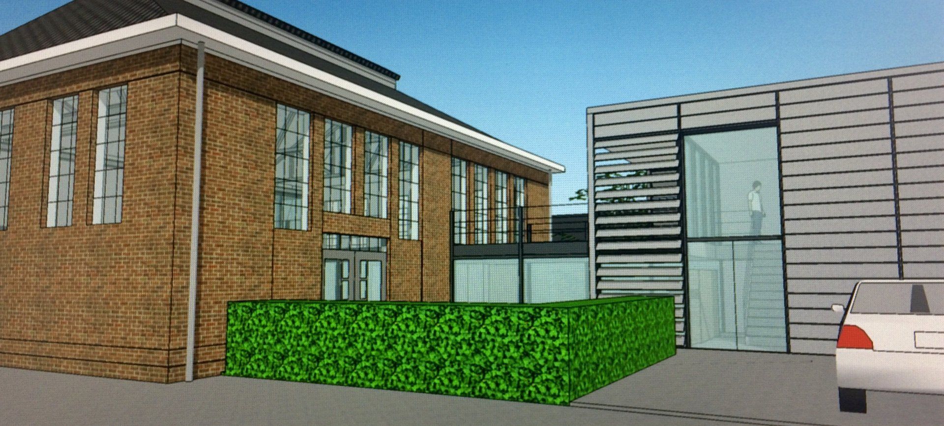 De uitbreiding met industrieel uiterlijk ontwikkelt zich vanaf het openbare plein aan de voorzijde dwars door de voormalige gasfabriek naar de private achterzijde. Twee royale B&B's kijken uit over het plein en hier is tevens de entree van de kookstudio. In de B&B's worden slaap- en zitgedeelte gescheiden door een vrijstaand volume met badkamer en pantry. De kookstudio bevindt zich in het bestaande gebouw op de entresol van de uitbreiding, waarbij de kwaliteit van één grote open ruimte middels de vide is behouden. Deze ruimte is niet nader ingedeeld met het oog op flexibel gebruik door de kookstudio, gasten, bewoners of derden. Het aangrenzende terras aan het plein kan bij dit flexibel gebruik betrokken worden. De woning is deels gesitueerd in de gasfabriek onder de kookstudio en loopt door naar de achterzijde. Vanuit de woonkeuken is er vol zicht op de karakteristieke oude spanten almede op de zitkamer met het verdiepte terras aan de achterzijde. Op de zitkamer is een groot dakterras en beide grenzen aan de entree van de woning met aansluitend de slaapvertrekken verdeeld over twee bouwlagen. Deze slaapvertrekken sluiten met een balkon en terras aan op de privacy van de tuin. De zinken gevelbekleding vormt een spel met licht door de gesloten en open lamellen. Achter de open lamellen en waar geen lamellen zijn bevinden zich grote glazen puien.