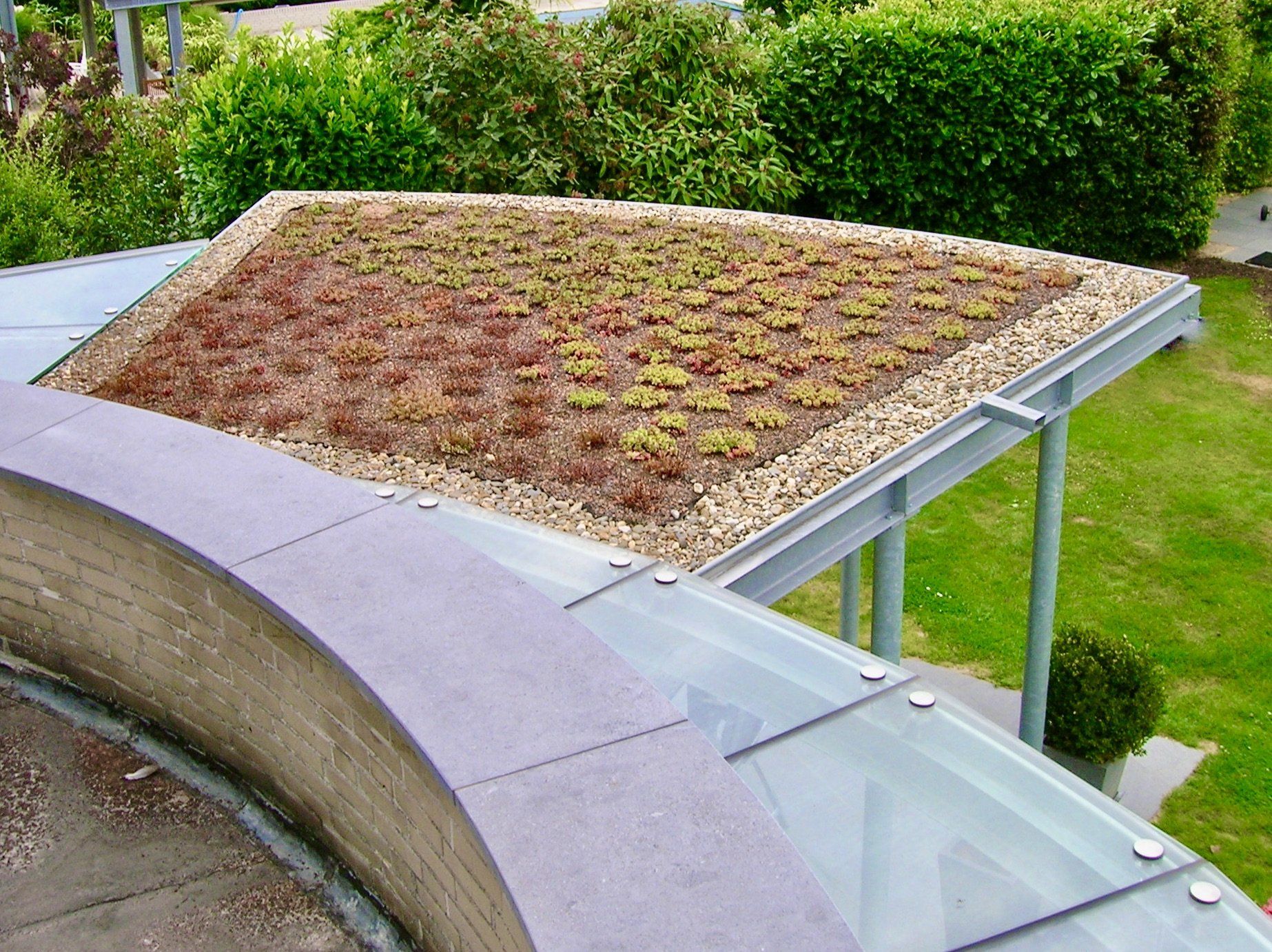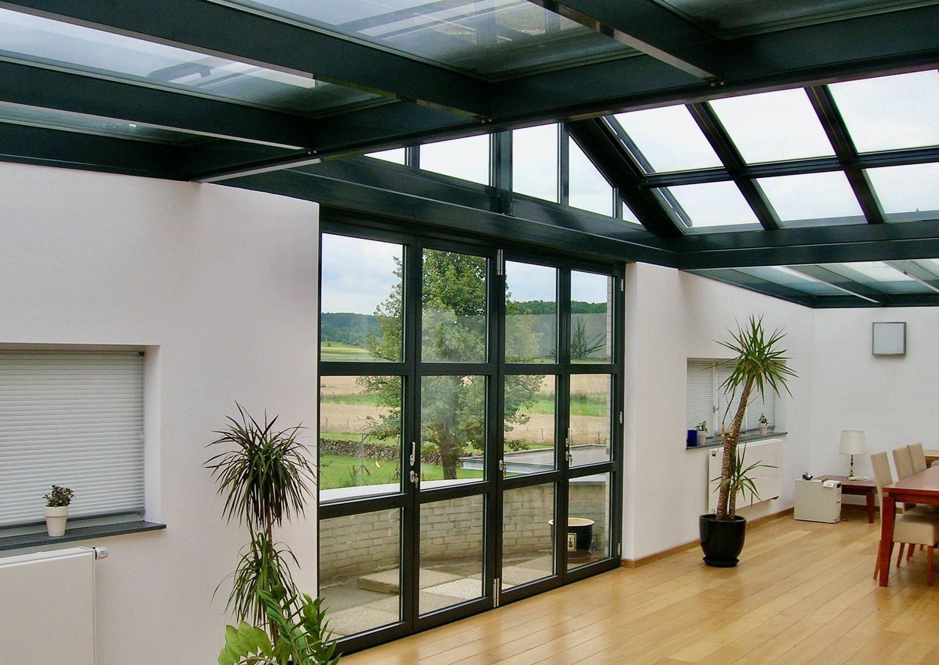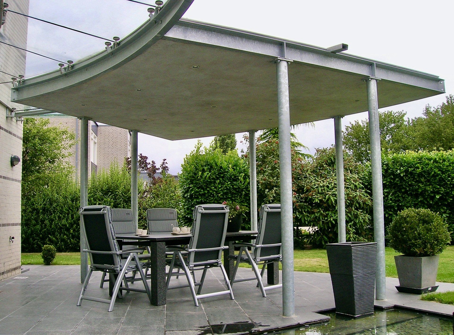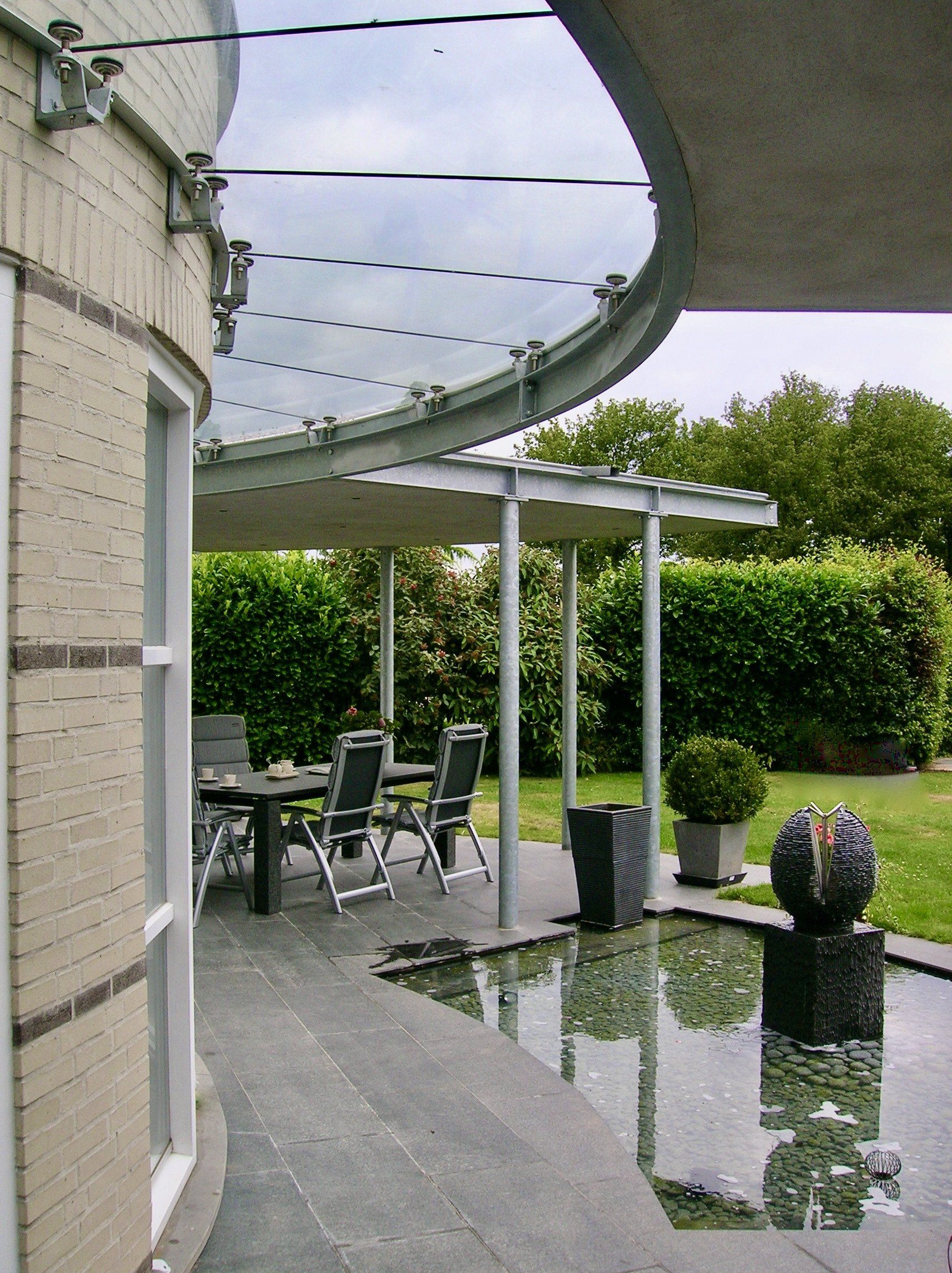 In de Maastrichtse wijk Heer is een dakterras omgebouwd tot een serre met behoud van het vrije uitzicht over de Limburgse heuvels. De gevels zijn hiertoe in de bestaande architectuur naar boven doorgezet waarmee een omsloten privacy biedende ruimte ontstaat. Het timpaanvormige glazen dak sluit hierbij aan op de klassieke thema’s van de woning. Het dak kan deels worden geopend en is uitgevoerd in antraciet aluminium waarmee het zich verbijzonderd ten opzichte van de rest van de woning. De openslaande deuren grenzen aan een halfrond balkon. In een later stadium zijn de terrassen op de begane grond overkapt. De hoofdvorm sluit hier aan bij de ronde uitbouw met het balkon. Vanwege de lichtinval is de overkapping door een glazen strook gescheiden van de woning en met het oog op het zicht vanaf de verdieping voorzien van vegetatie.
